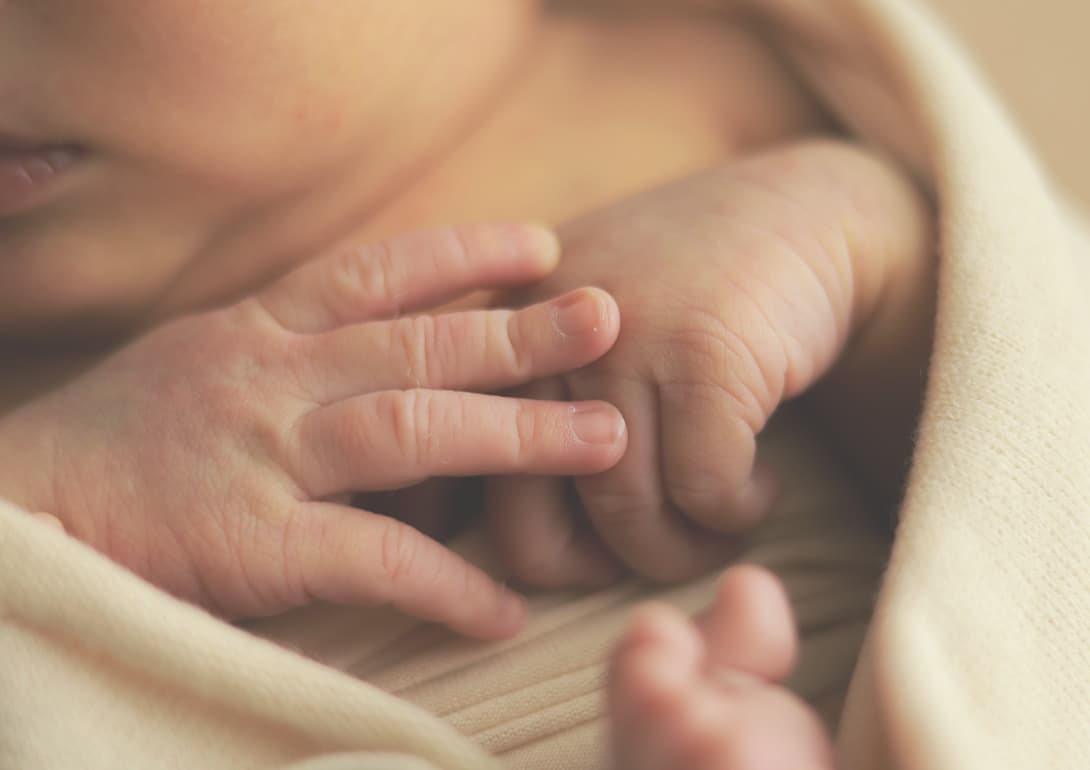 生後7日~14日頃がママのおなかの中で丸まっていた時に